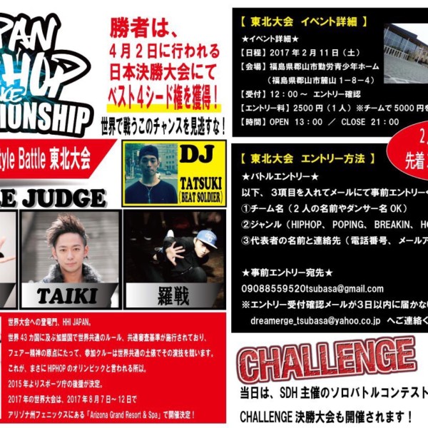 challengファイナル決定!ヒップホップインターナショナルバトル東北予選とコラボで開催決定! バトル参加者募集! CHALL...