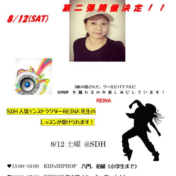 REINA HIPHOPレッスンを開催 講師 : REINA SDH人気インストラクターREINA先生によるHIP...